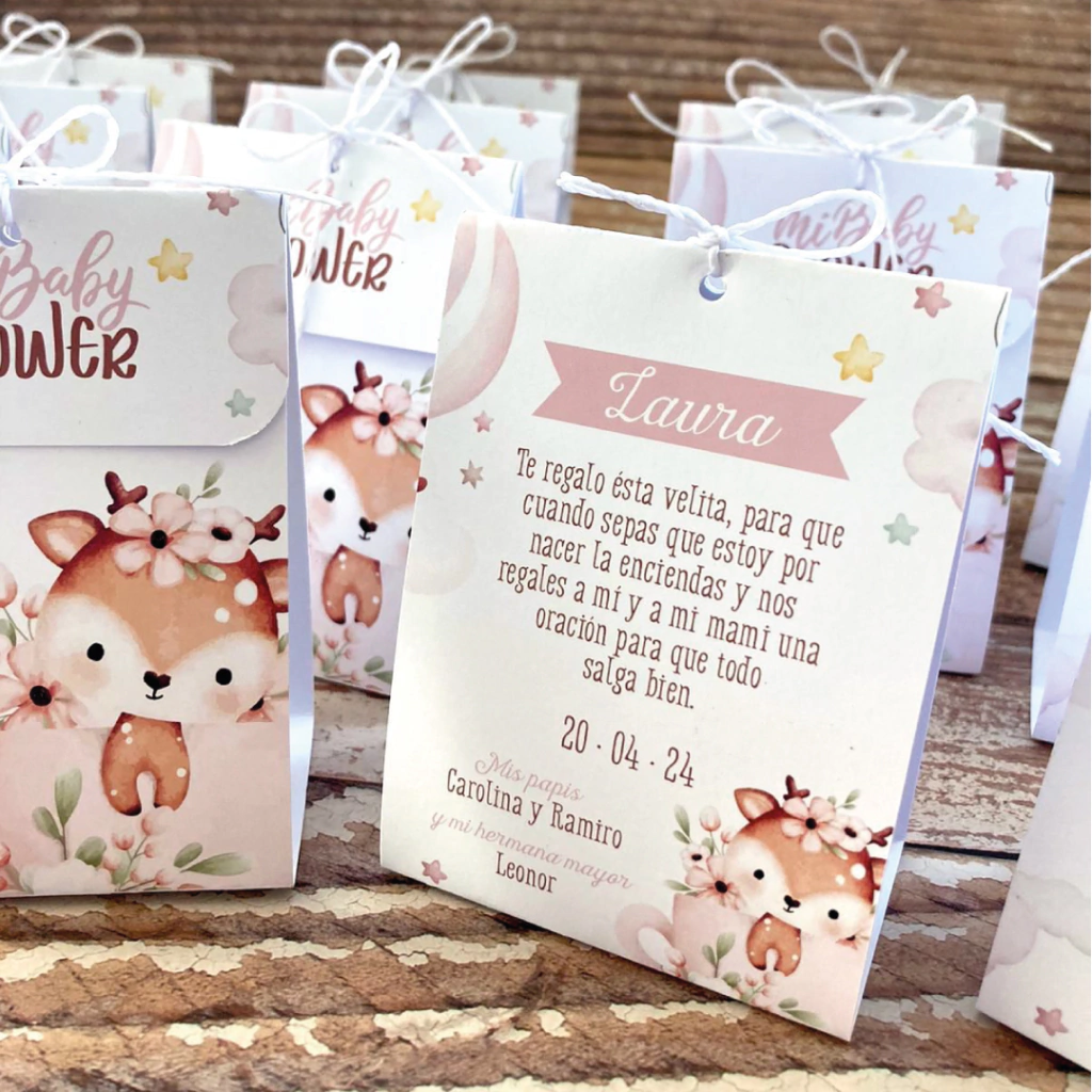 ¡Felicidades y buenos deseos en la llegada de tu bebé! Qué mejor manera de hacerlo que con velas personalizadas para la ocasión!Contiene vela blanca. Caja tamaño: 7x10x4cmDiseño a elección
